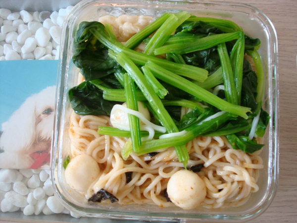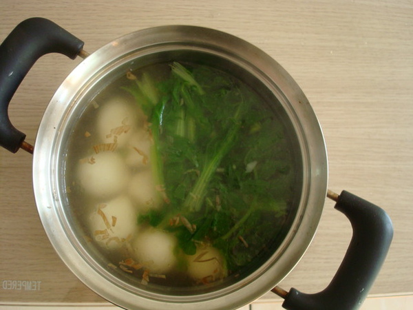裡面有6顆湯圓+不可思議的茼蒿菜,