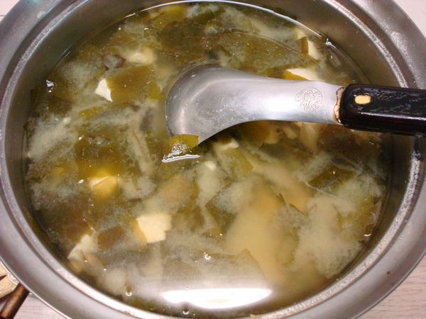 高湯裡有油蔥酥、味林、還講究地加了茼蒿菜