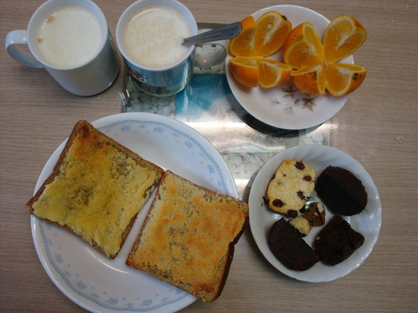 某日:奶酥全麥土司+麥片牛奶+柳橙+史康(在公館Take it 購買)