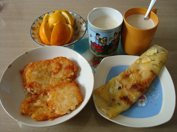 又某日:薯餅+起司蛋餅+麥片牛奶+柳橙