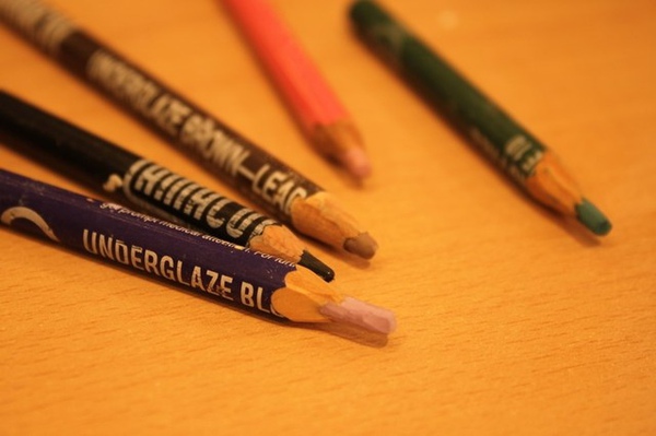 有不同的顏色,是直接畫在胚體上就能稍出來的筆(鉛筆不會燒出來),