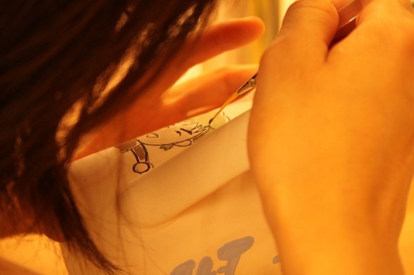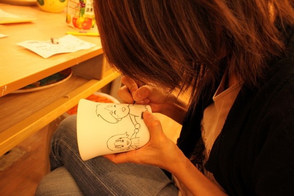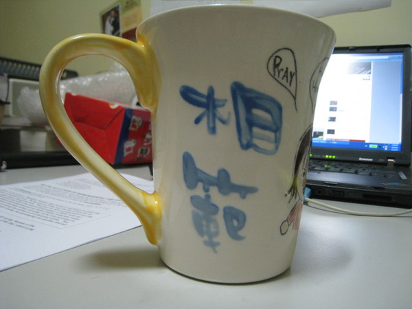 ★上好顏色,用窯燒鉛筆寫杯底的字…(刻字ING)
