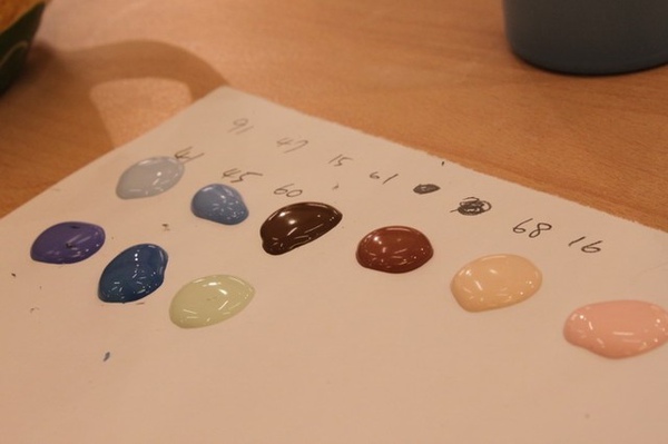 ★這就是顏料區。有時「大姊姊們」(應該年紀比我小==)忙碌時,我會自己跑去擠…
