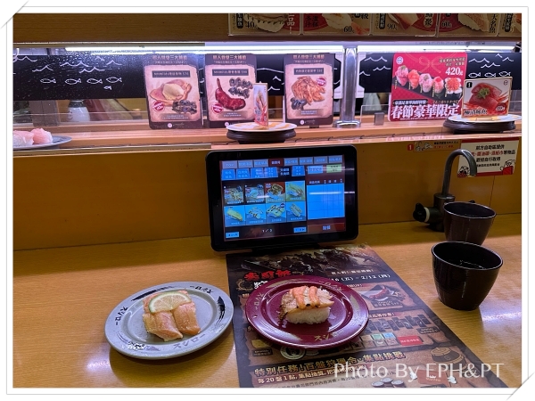 解鎖了獨自吃迴轉壽司任務,原來一個人會給兩人位置嗎?真不錯。(還是離峰時間的關係?)
