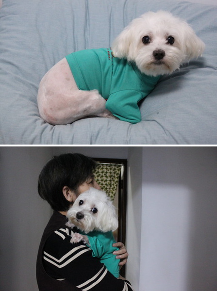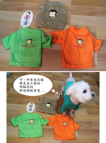 本來皮皮也是穿不下的T恤,是我幫他洗澡嚕毛後才嘟嘟好滴…