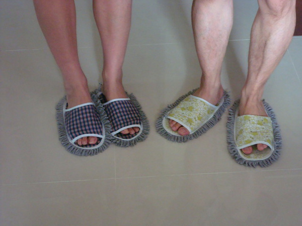 抵達小窩,男女主人穿著可愛的拖把拖鞋迎接我們