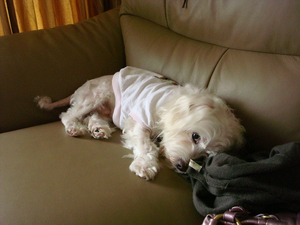 此時皮仔正在沙發貴妃椅上呼呼大睡