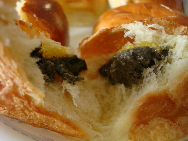 芝麻餡旁邊的奶油是鹹味的,甜甜鹹鹹的口感還不錯啦~