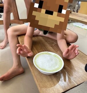 倒是哥哥會被我使喚去做甜點;弟弟則是變得蠻會削蘋果和刷抹茶的。