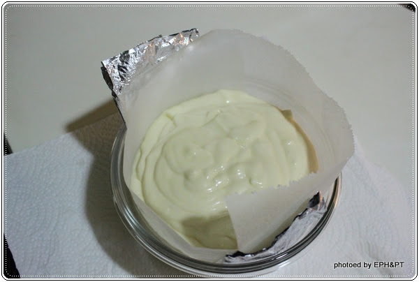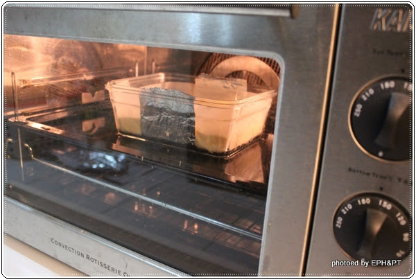 3.這款蛋糕是水浴烤法,所以溫度不可太高,大約要掌控在150度c - 160度c