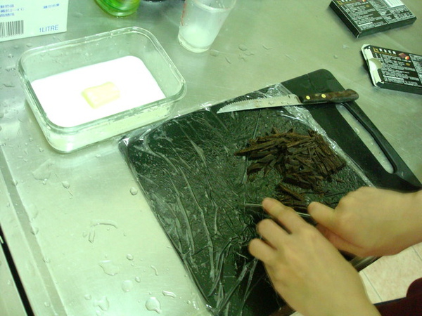 2. 微波過程拿出黃金比例77%黑巧克力來剁碎