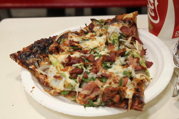 ★這是小人我點的單片PIZZA-$60-北京烤鴨口味–料多味美,何況又跟盤子一樣大…值得一試