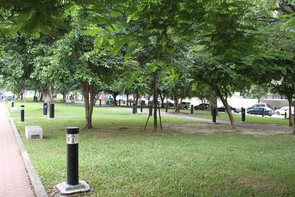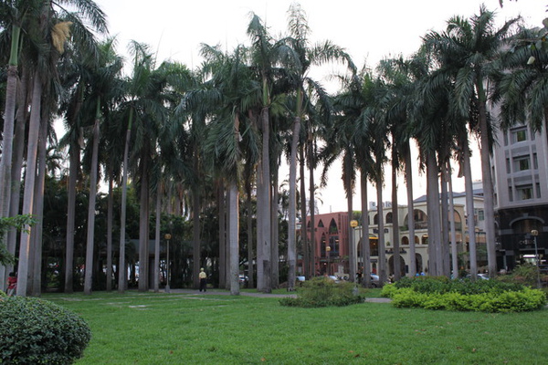 前往店家的途中,一樣是步行在寬廣多樹的步道,
