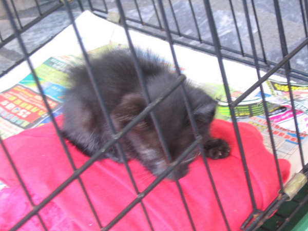 我們下車的地方,有一隻小小貓在等人認養