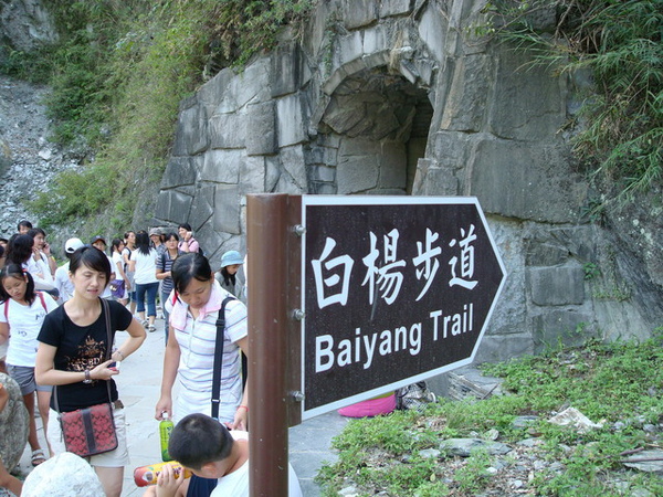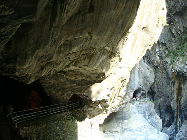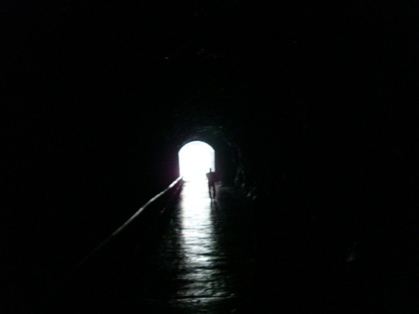 步道裡面暗矇矇涼颼颼的,還好有豪爽的黃大哥借我們手電筒,